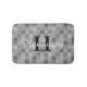 Monogrammed gray mosaic tile pattern bath mat. Modern non slip shower rug with custom name. Trendy mozaic design with customizable background color. Chic stylish typography for monogram initial letters, quote or name. Create your own personalized classy bathroom interior with this trendy tiled print template. Modern monogram home decor for your house or hotel. Unique gift for new home / housewarming party. Elegant shades of gray colors. Black and white design.
