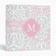 Monogrammed Gray Pink Floral Damask Pattern Binder