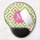 Monogrammed Green and Pink Ikat Pattern Gel Mouse Pad