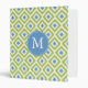 Monogrammed Green Blue Diamond Ikat Pattern Binder
