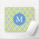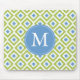 Monogrammed Green Blue Ikat Pattern Mouse Pad