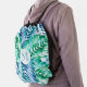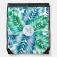 Monogrammed Green Blue Palm Tree Pattern Drawstring Bag