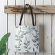 Monogrammed Green Botanical Pattern Tote Bag