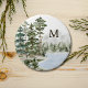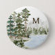 Introducing our Monogrammed Green Pine Forest and Lake button. Featuring woodland watercolor illustration. Personalize it and add a touch of nature charm to your style. Suitable as gift for nature lovers.