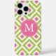 Monogrammed Green Pink Diamond Ikat Pattern Case-Mate iPhone Case