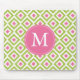 Monogrammed Green Pink Diamonds Ikat Pattern Mouse Pad