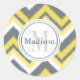 Monogrammed Grey Yellow Ikat Chevron Pattern Classic Round Sticker