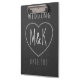 Perfect clipboard for all organized Brides-2-be. Add your initials and wedding date to the chalk effect love heart. The design is duplicated on the reverse and your details will too. It's a printed effect and not real chalkboard so the text won't rub off!