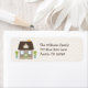 This cute and pretty house with a green door, dormer, yellow chimney and heart shaped window flanked by flowering green topiary in blue pots can be personalized with your initial or monogram. This custom return address label with a cream polka dot background can be customized with your name and address. Artwork © Chrissy H. Studios, LLC. All Rights Reserved.