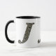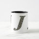 Elegant monogram letter J filled with delicate white hydrangea flowers coffee or tea mug. Click on Customize to add text. Great gift idea. This image is available on many products in my gallery.