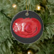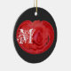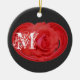 Monogram initials on a lovely red rose in full bloom with lingering raindrops ornament. Replace your initials in the template. Click on Customize to add a message on the back or to change font size, color, and style. If you would like this image on the back of the ornament as well, or have any questions or requests, please contact me. This image is available on many products in my gallery.