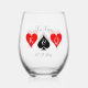 Monogrammed Las Vegas wedding party logo Stemless Wine Glass. Serve your drinks in style. Classy drinking glass personalized with initials of bride and groom. Unique drinking glasses for fun destination wedding in Sin city. Change the quantity to get the cheap bulk discount price. Classy emblem with red hearts and spade.