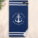 Monogrammed Light Navy Blue White Anchor Nautical Beach Towel