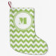 Monogrammed Lime Green White Striped Chevron Small Christmas Stocking