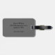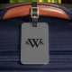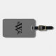 Gray and black monogrammed luggage tag.