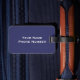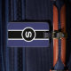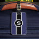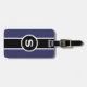 Monogrammed luggage tag for the distinguished gentleman in navy blue, black and white
