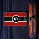 Monogrammed luggage tag for the distinguished gentleman in red, black and white