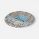 Pretty rustic style monogrammed mason jar paper plate with a blue hydrangea flower and a wooden fence and antique damask pattern lace background and stitched blue ribbon. This wedding or bridal shower or couples shower, engagement or anniversary party plate personalized with the initials and monogram of the happy couple or bride and groom on the mason jar is perfect for a country, farmhouse, garden party or barnyard style special occasion or celebration. Designed by Chrissy H. Studios, LLC. All rights reserved.
