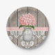 Monogrammed Mason Jar Pink Hydrangea Wedding Paper Plates
