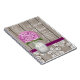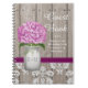 Pretty rustic style monogrammed mason jar binder with a reddish purple hydrangea flower and a wooden fence and antique damask pattern lace background and stitched plum hued ribbon. This wedding or bridal shower or couples shower guest book and words of advice book can be personalized with the initials and monogram of the bride and groom on the mason jar and customized with the names of the happy couple. Perfect for a country, farmhouse, garden party or barnyard style wedding or shower. Designed by Chrissy H. Studios, LLC. All rights reserved.