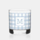 Monogrammed Minimalist Blue Gingham Plaid Pattern Whiskey Glass