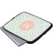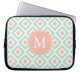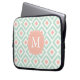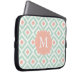 Monogrammed Mint Coral Diamond Ikat Pattern Laptop Sleeve
