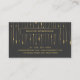 Uneven gold vertical lines on a charcoal background, Front round disc has a place for your initial monogram, the back is similar with a rectangular nameplate for your name and information on the bottom - simple yet a card that folks will remember.