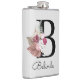 Monogrammed Modern Pink Floral Initial B Flask