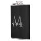 This personalized flask features your custom name and initial in crisp white and gray typography on a deep black background—designed for groomsmen who appreciate modern style and masculine gear. Whether you're curating bachelor party favors or handing out wedding day thank-yous, this sleek stainless steel flask adds a personal touch to every celebration. The elegant monogram layout blends sports-inspired design with refined typography. Customize the name and initial to match your event palette—distinctly modern, distinctly for him.