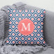 Monogrammed Navy Blue Coral Diamonds Ikat Pattern Throw Pillow