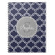 Monogrammed Navy Blue Lattice Pattern Notebook