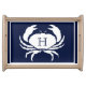 Monogrammed Navy Blue White Crab Nautical Serving Tray