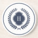Customize it with your own initial. Navy blue and white wreath crest with customizable monogram.