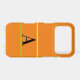 Modern design with a simple feel. Cool orange background with geometric striped lines alternating in bright yellow and citrus green. Fun summer pattern. Personalize Monogram initial in black text. Original designs by TamiraZDesigns.
