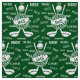 A personalized sports golf themed design in green and white. It features a gold ball that can be customised with monogram initials and a background pattern of golf clubs , golf balls and various golfing terms typography - all brought together to create a unique personalised golfing gift for the pro or amateur golfer.