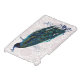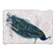 A colorful peacock on a soft pink damask background. Personalize with your monogram or delete the letter field.