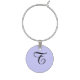 Monogrammed Wine Charms. Pretty periwinkle with black script. Add a special touch to your wedding reception or other party event wine or champagne glasses for you and your guests. Personalize each charm with an Initial of your choice. Shown with black letters. Lovely for wedding gift favors, wedding anniversary, birthday party, ladies night out, etc. Original by TamiraZDesigns at www.zazzle.com/tamirazdesigns