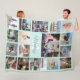 Monogrammed Photo Collage Teal Blue & Gray Script Fleece Blanket