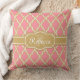 Monogrammed Pink and Gold Lattice Pattern Throw Pillow