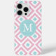 Monogrammed Pink and Mint Diamonds Ikat Pattern Case-Mate iPhone Case