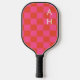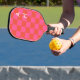 Monogrammed Pink and Orange Checkerboard Pattern Pickleball Paddle