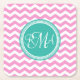 Monogrammed Pink and Teal Chevron Custom Square Paper Coaster
