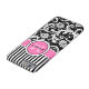 Monogrammed modern pink, black, and white stripes with damask Vibe™ iPhone 6 case.