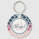 Monogrammed Pink Blue Moroccan Lattice Pattern Keychain