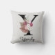 Monogrammed Pink Boho Floral Initial Y Throw Pillow