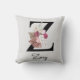 Monogrammed Pink Boho Floral Initial Z Throw Pillow