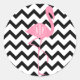 Monogrammed Pink Flamingo + Black Chevron Classic Round Sticker