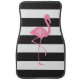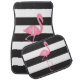 Monogrammed Pink Flamingo + Black + White Stripes Car Mat