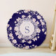 Monogrammed Pink Flowers and Lace Floral Round Pillow