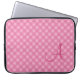 Dusty pink gingham decorates this monogrammed laptop sleeve. Change the monogram letter to suit your needs. The design is from original art.